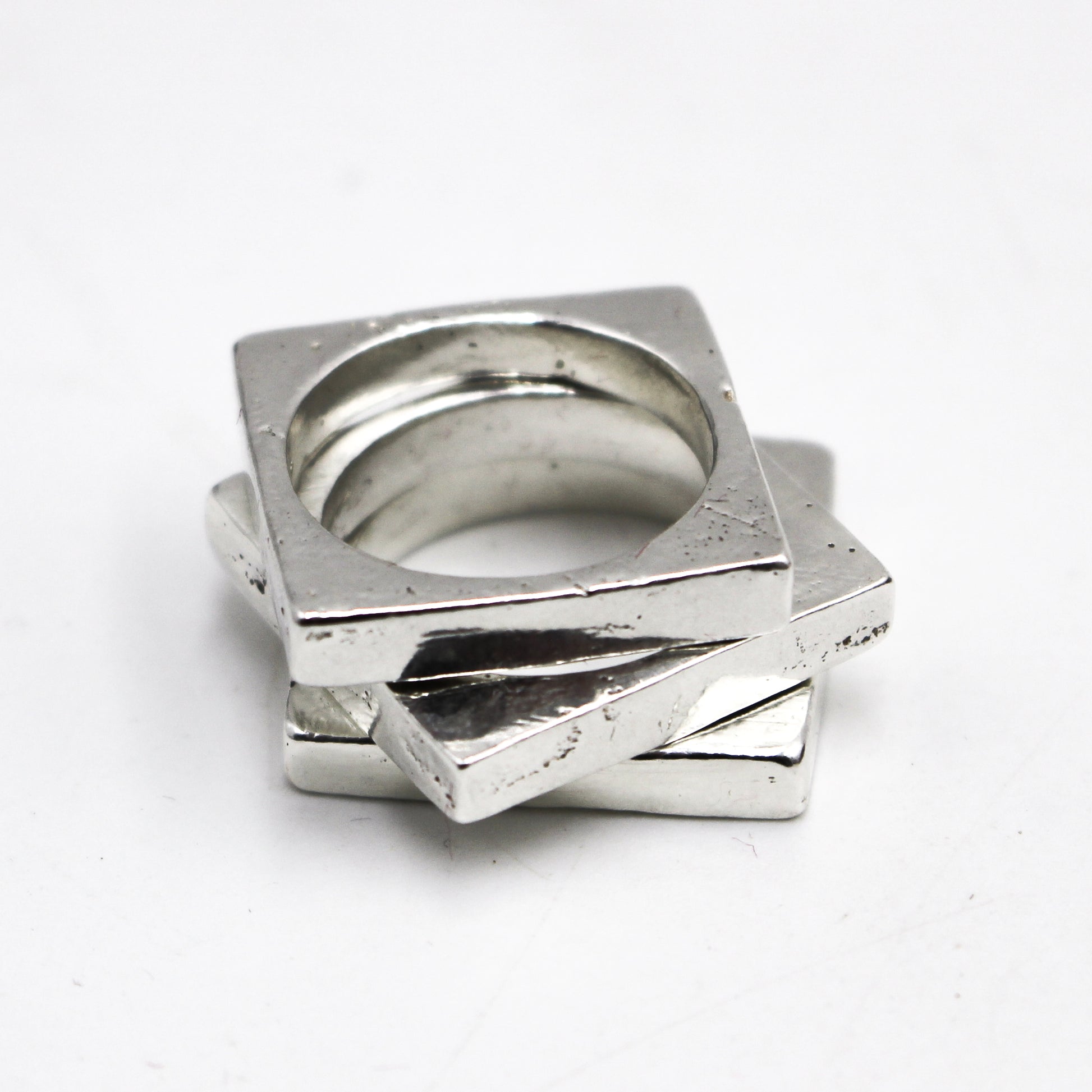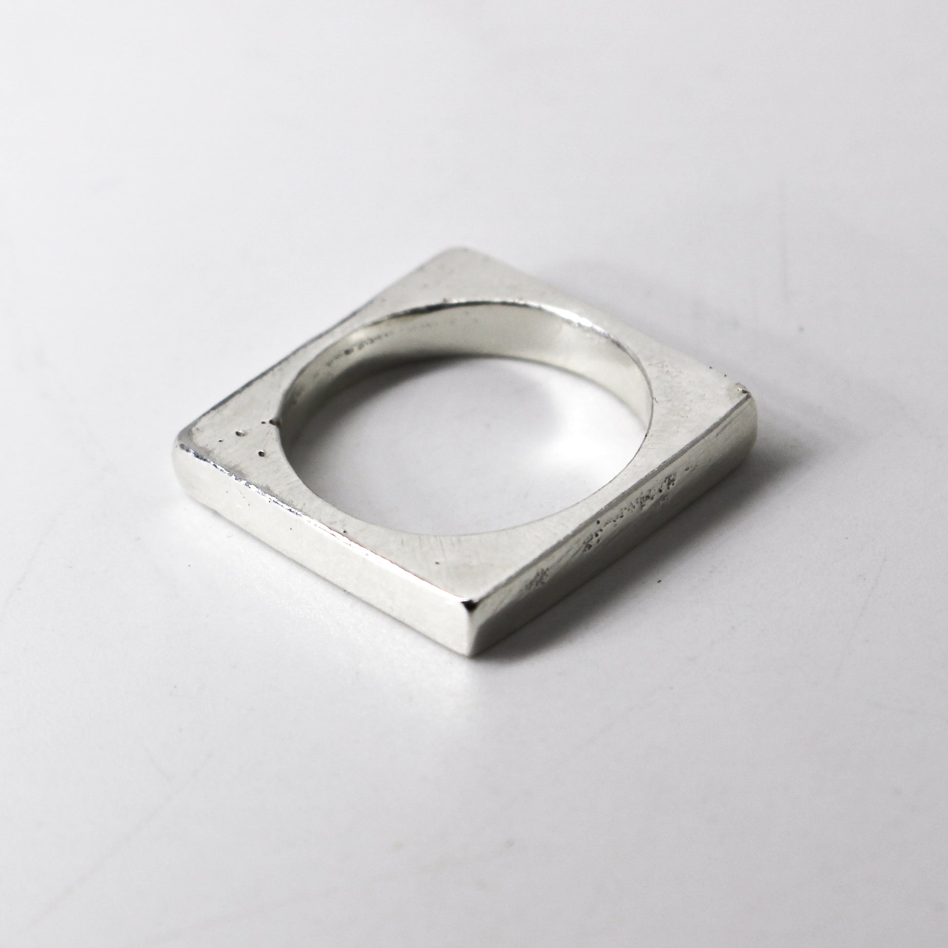 Solid cast brutalist signet ring, available in sterling silver, 10k or 14k yellow gold.